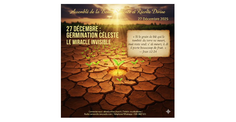 Si vous vous sentez sous pression en cette fin d'année, réjouissez-vous ! C'est le signe que la vie divine en vous est sur le point d'éclore. Ne déterrez pas votre semence par le doute. Faites confiance au processus divin. L'Assemblée de la Bonne Semence et Récolte Divine est là pour vous rappeler que Dieu travaille même dans le silence.